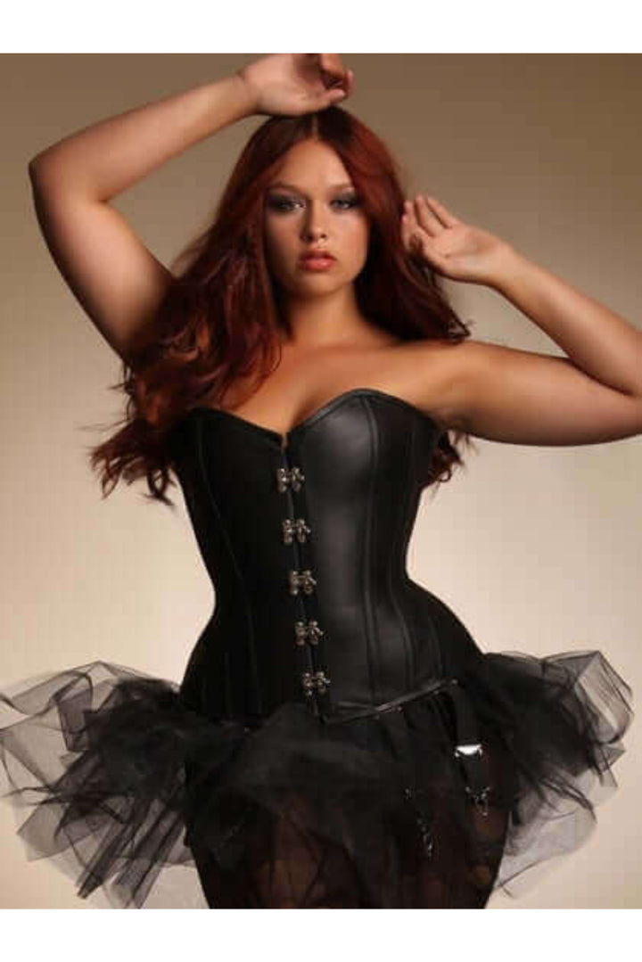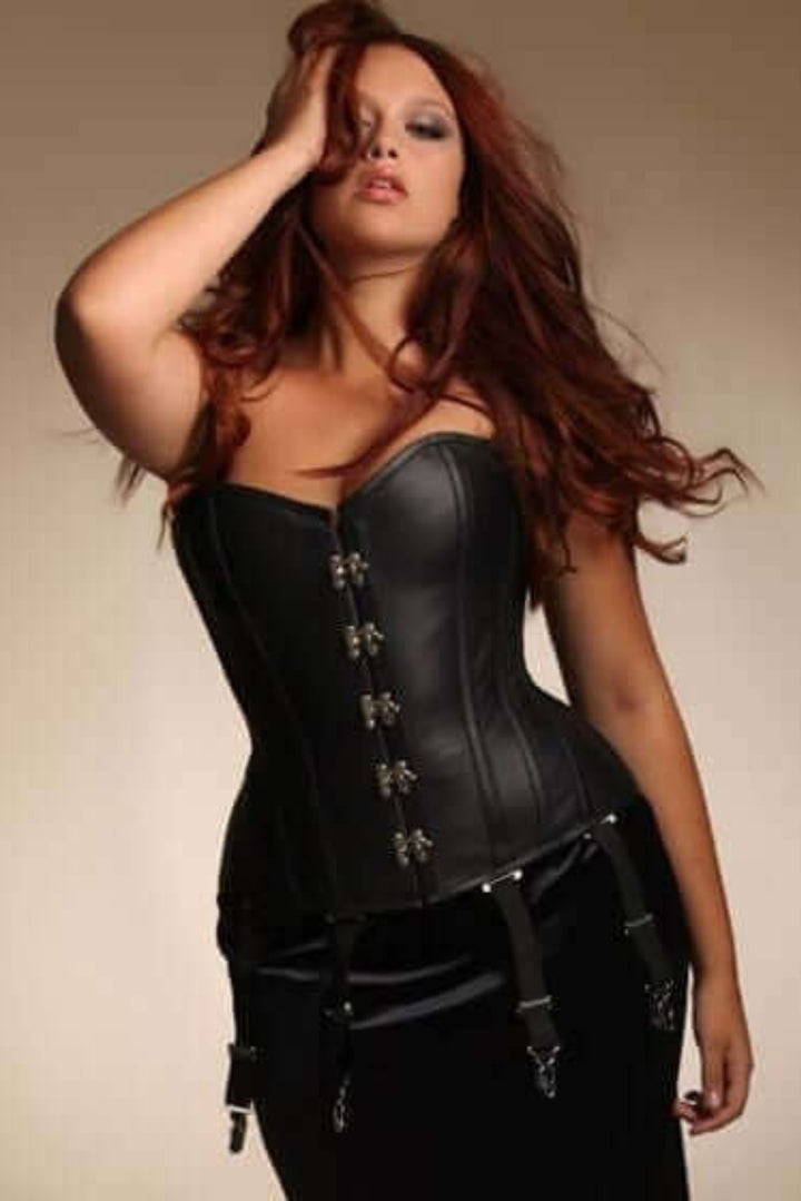Plus Size Aliya Steel Boned Black Leather Corset