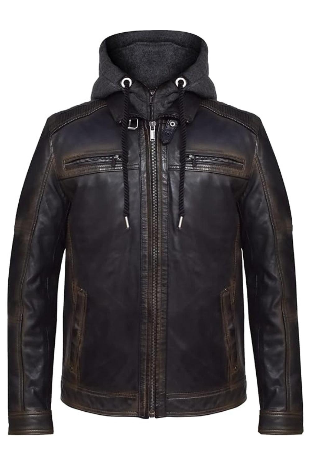 Designed with a removable hood, band collar, zippered cuffs, and multiple secure pockets, this jacket adapts easily from classic biker to casual streetwear. It’s a premium essential from the Men Hooded Leather Jackets collection at Red Bear Jacket.